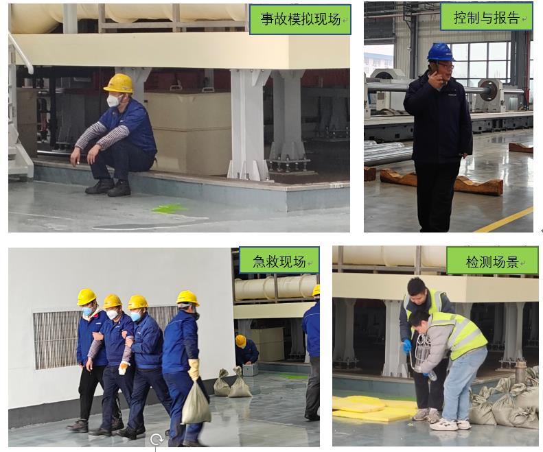 特種缸車間作為本次事故模擬地點、公司根據(jù)應(yīng)急救援和措施展開系列現(xiàn)場搶險與報告、及時聯(lián)系高新區(qū)事故接警、做好企業(yè)警戒及響應(yīng)和搶險行動、配合消防組織和檢測機構(gòu)展開事故處置,并完成應(yīng)急和善后行動。